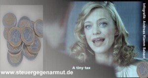 London / Berlin. 18. Februar 2010. Mit einer Finanz-Transaktions-Steuer deren Höhe etwa bei 0,05 Prozent liegt, könnten mehr als 100 Milliarden Euro Finanz-Mittel für die Hilfe für arme Menschen, Schaffung von Arbeitsplätzen, Klimaschutz und zahlreiche andere wichtige Projekte jährlich gesammelt werden. Darüber informiert in einem 2 Minuten dauernden Informations-Film die Künstlerin und Schauspielerin Heike Makatsch und der Schauspieler Jan Josef Liefers. Der Film ist bei www.steuergegenarmut.de zu sehen und bei You Tube. Die Produktion des Filmes wurde von der Cinema for Peace Foundation finanziert. Die Idee des Films geht auf den britischen Regisseur Richard Curtis und die Robin Hood Tax Campaign zurück.